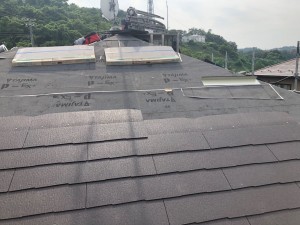 野地板の上に新しいルーフィング材を設置し、屋根材を設置していきます。