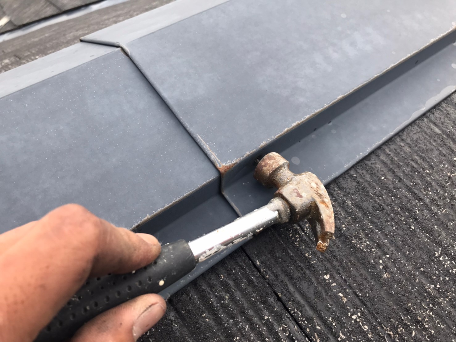 49912151.2b1a73234d351eec93f4e1bf797c3b5a.19121508-2 屋根棟の釘浮きをしっかり打ち付けます。