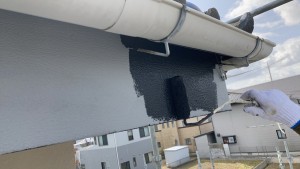 外壁上塗り。 手塗ローラーで3回塗り。厚くしっかりした塗膜を形成します。