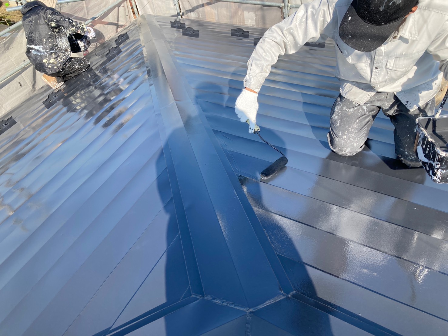 屋根の上塗り。