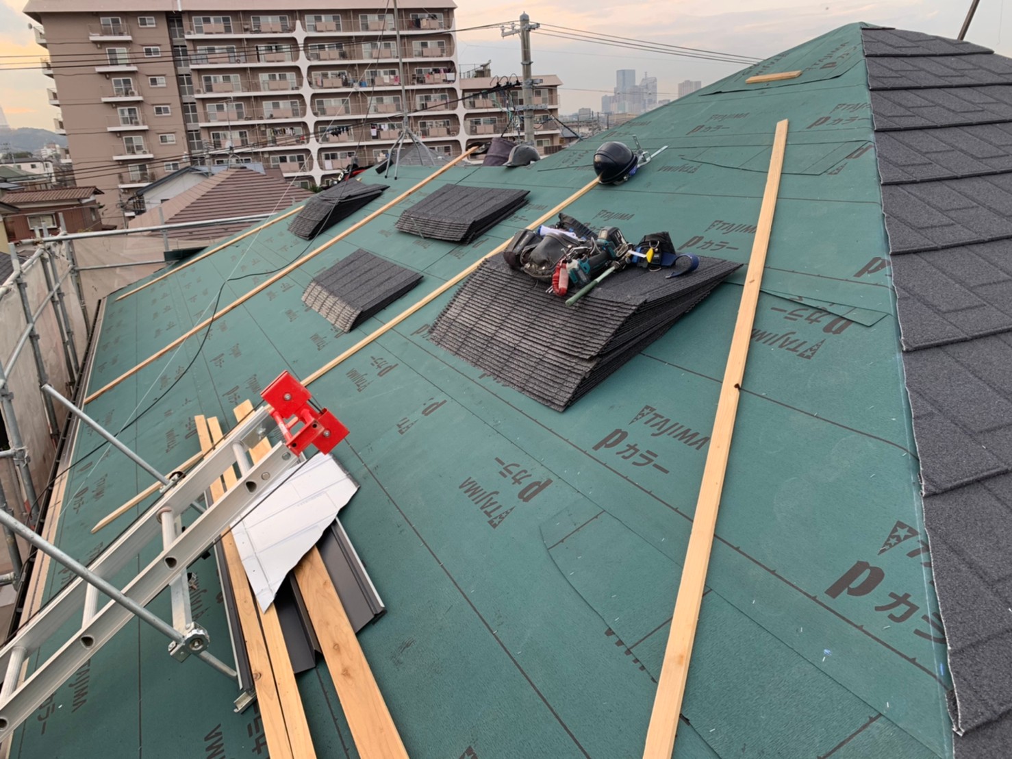 雨漏り防止のルーフィング材を設置。