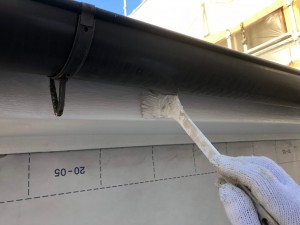 屋根上塗り。 手塗ローラーで3回塗り。厚くしっかりした塗膜を形成します。