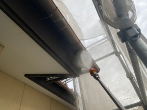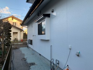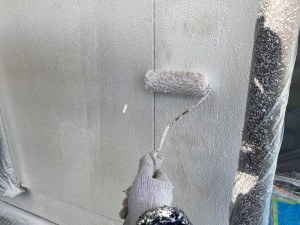 外壁上塗り。 手塗ローラーで3回塗り。厚くしっかりした塗膜を形成します。