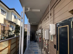 外壁は経年劣化により色あせ・汚れが目立ちます。