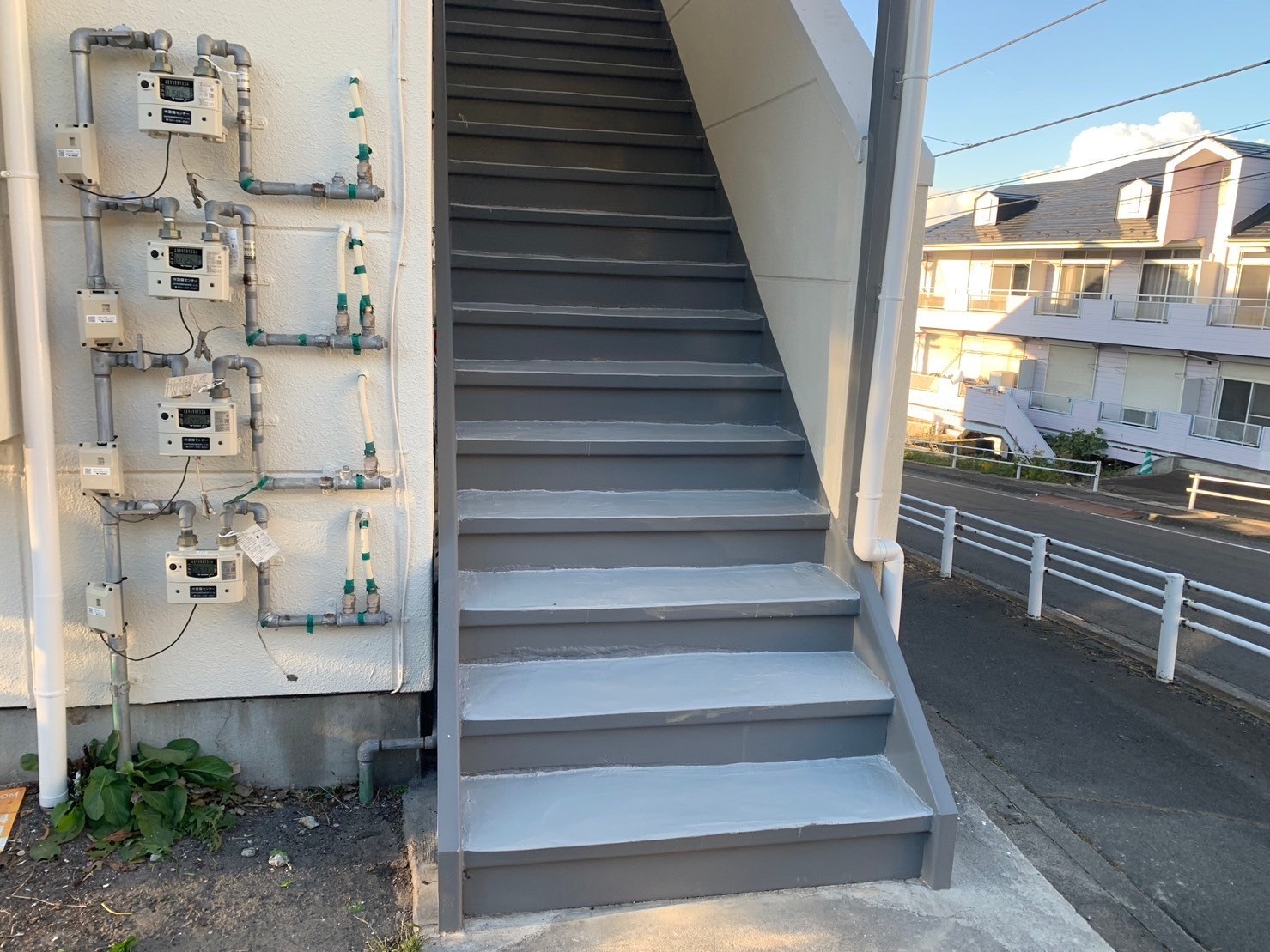 2階通路は床塗装も行い新築時のような美しさが蘇りました