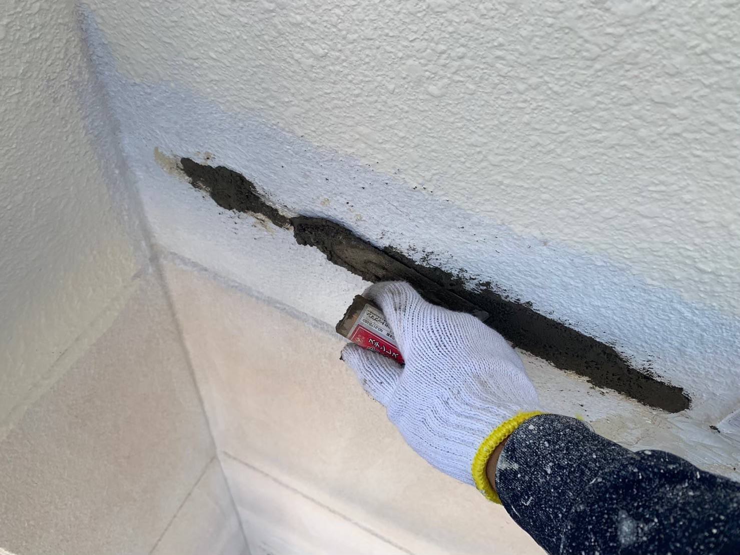 コーキング打ち替え作業 既存コーキング材を撤去し、プライマーを塗布後新たなコーキング材を充填。