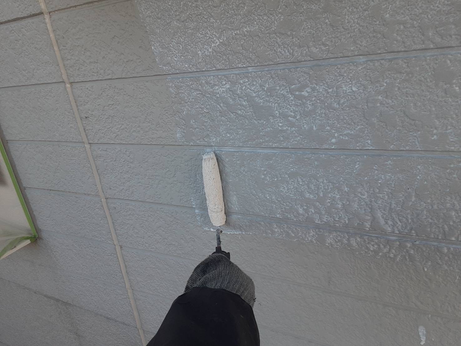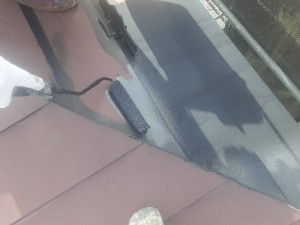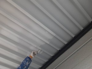 屋根上塗り 手塗ローラーで3回塗り。厚くしっかりした塗膜を形成します。