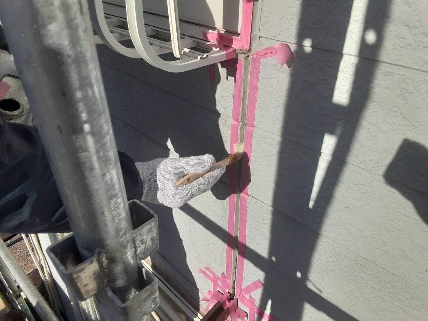 コーキングのうち替え作業 既存コーキング材を撤去しプライマーを塗布