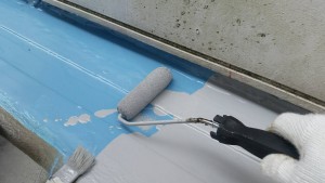 溝のあるところはシートが張れないため、トップコートをしっかり塗ります。