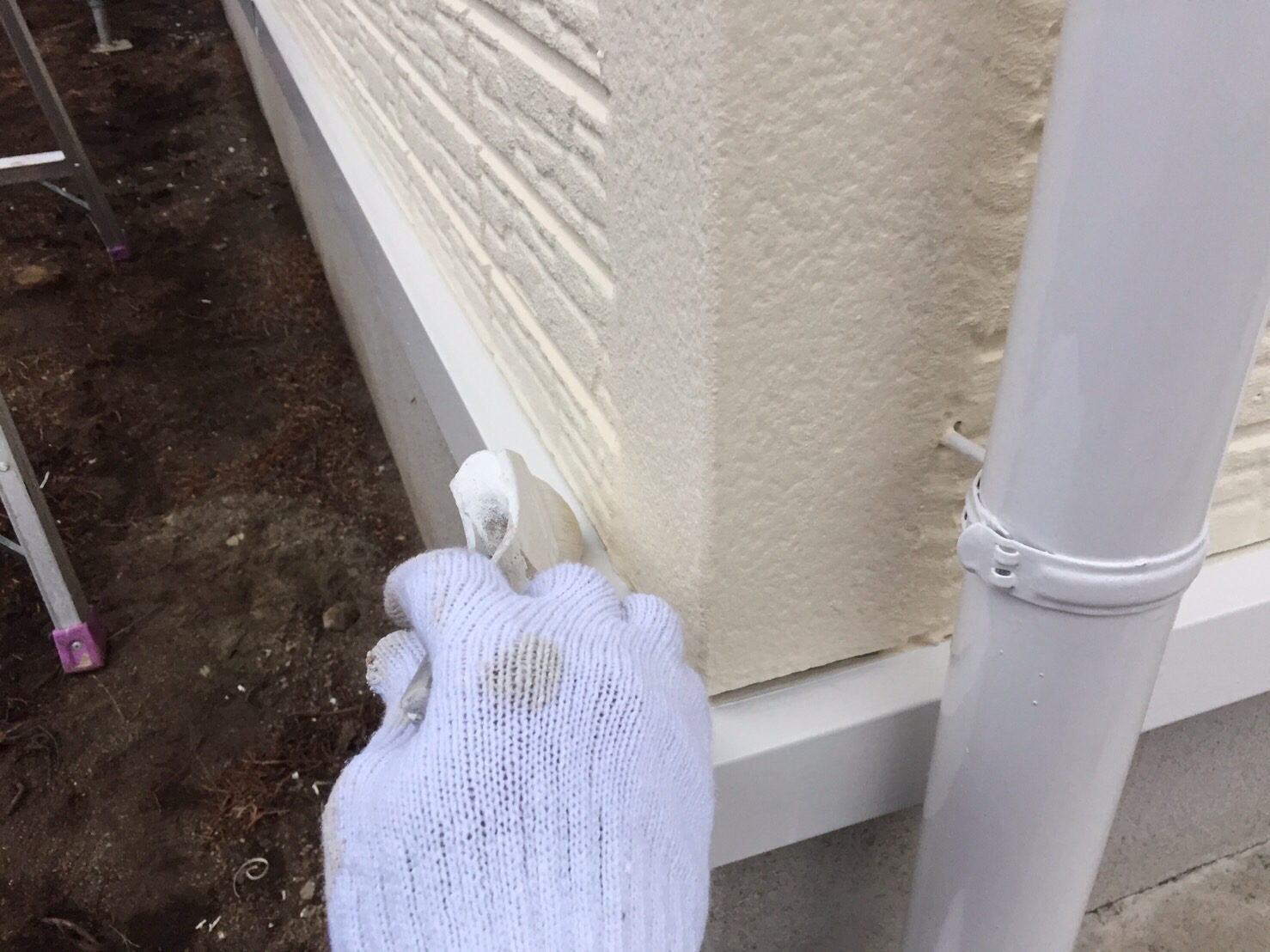 コーキング材の脇の細かいところには、ハケで塗っていきます。